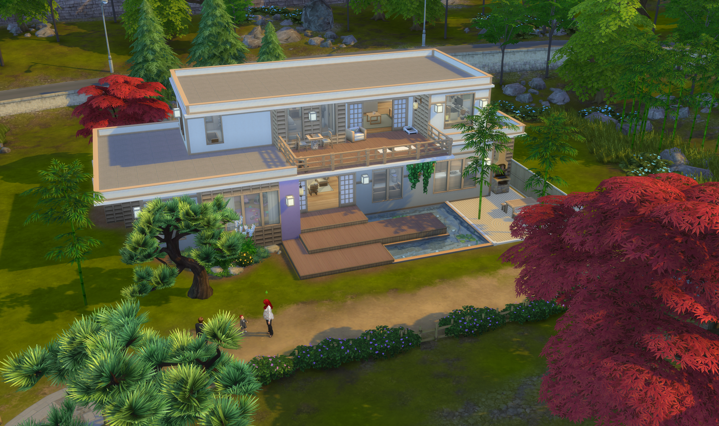 앞마당에는 소나무와 붉은 단풍이 균형을 잡고 있고,