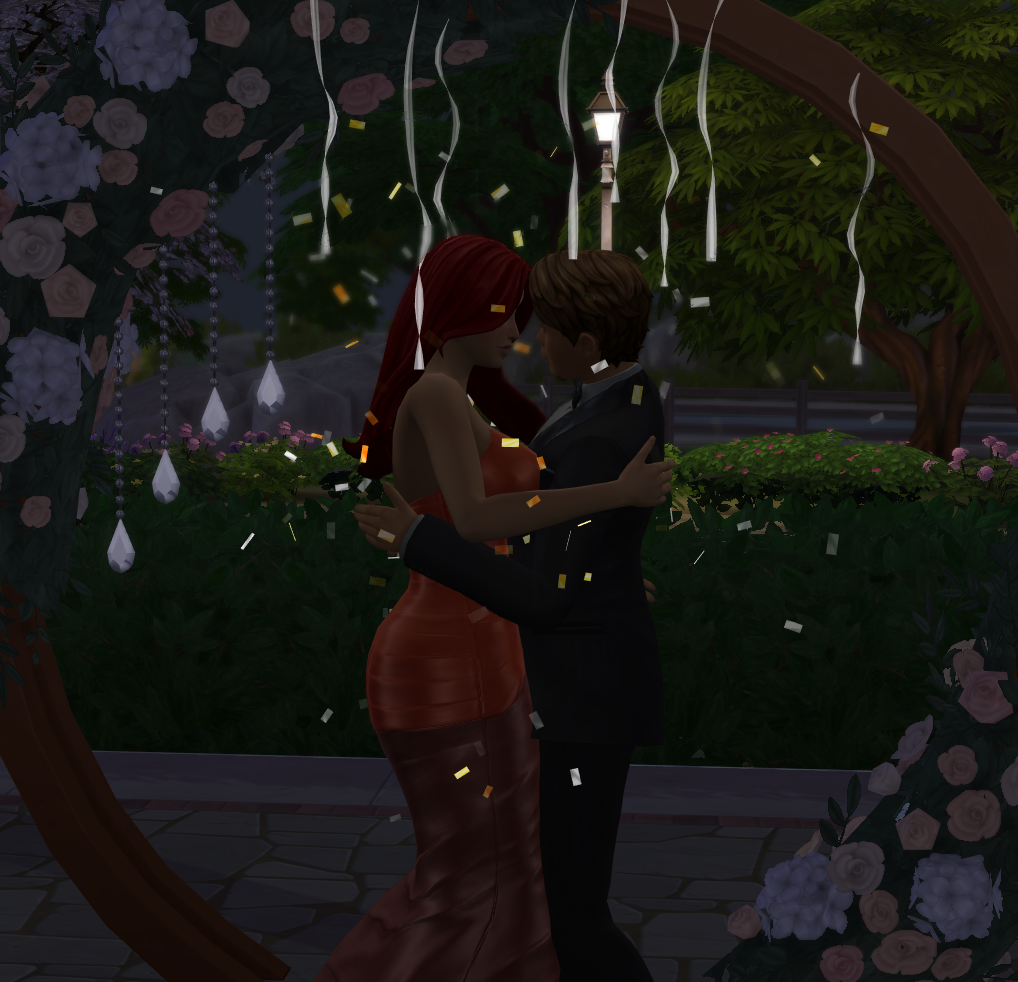 늦은밤 꽃장식아래에서 그들은 결혼식을 올렸다.
