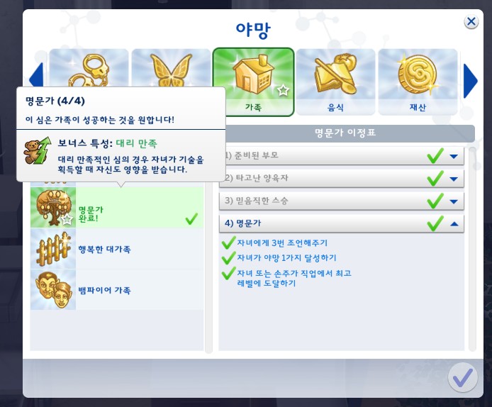 명문가 야망을 달성했다는 알림은